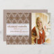 Pretty brown damask print with a satin look ribbon accented in crystals, this design is thoroughly girly and feminine. Versatile formatting allows this Graduation photo announcement card to be used as a party invitation (as shown) or customise the text on the back to turn into an announcement only. Equally perfect for high school or college and available in a variety of colours.