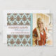 Pretty brown damask print with a satin look teal ribbon accented in crystals, this design is thoroughly girly and feminine. Versatile formatting allows this Graduation photo announcement card to be used as a party invitation (as shown) or customise the text on the back to turn into an announcement only. Equally perfect for high school or college and available in a variety of colours.