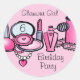 Our Glamour Girl Birthday design is perfect for an especially glamourous young lady on her birthday or anytime. Featuring everything a little girl needs to dress up: nail polish, makeup, lipstick, perfume, hair spray, rollers and jewellery. Personalise it with your own custom text even add an age in the compact mirror! On coordinated T-shirts, birthday party invitations, thank you notes and cards, stickers, postage, mugs, tote bags, mousepads, buttons and more! PinkInkArt original!