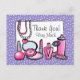 Our Glamour Girl Birthday design is perfect for an especially glamourous young lady on her birthday or anytime. Featuring everything a little girl needs to dress up: nail polish, makeup, lipstick, perfume, hair spray, rollers and jewellery. Purple polka dotted background. Personalise it with your own custom text, even add an age in the compact mirror! On coordinated T-shirts, birthday party invitations, thank you notes and cards, stickers, postage, mugs, tote bags, mousepads, buttons and more! PinkInkArt original!