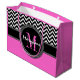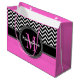 Glamour Girl Hot Pink and Black Chevron Monogram Large Gift Bag
