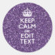 Glamour Purple Keep Calm Personalised Classic Round Sticker