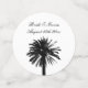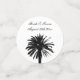 Glamourous beach wedding palm tree monogram table Confetti. Classy script typography template with exotic palm tree leaves silhouette. Black and white design for summer and destination wedding venues. Part of big matching collection set with personalised decor and luxurious decorations. Impress your guests on your special day.