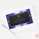 The design features a noble shimmering blue frame with fine decor lines, on a plain black background.