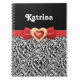 Glamourous Black white damask & red bow and jewel Notebook