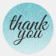 A modern, pretty blue faux glitter ombre thank you sticker or envelope seal. The turquoise blue glitter ombre pattern fades onto a white background. The text "thank you" in black is set in modern script. Perfect thank you sticker with modern pattern, sparkle, luxury and glam.