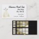 Perfect card for a Bridal Shop employee or the Bridal Shop itself. One side has an illustration in black white and gold of a shop window with a wedding dress inside. A wedding dress decorates the left side of the front with customisable text