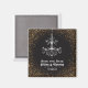 Make your own black and glam gold wedding Save the Date magnets to send to wedding guests- Reads 'Save the Date' in modern, white letters. Couple's names below in elegant lettering with wedding date underneath. At the top is a beautiful, fancy crystal chandelier design. Against a charcoal black background with faux gold glitter circular border. Note: All images are printed. Not actual glitter or gemstones. Lovely Save the Date wedding favour keepsake for friends and family to remember your wedding day. Perfect for elegant weddings, formal weddings, gold weddings, vintage wedding styles, black and white or black and gold wedding colours, and Great Gatsby glam wedding themes. We have more save the date magnets in our Zazzle.com/angela65 store.