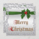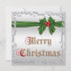 Stylish custom Christmas party invitations. Elegant and glamourous Annual Christmas party celebration invites for family, informal or formal corporate events. With a beautiful festive silky green sash bow with 3 red berry beads printed image on a stunning classy silver background with a chic, trendy glitz and glam border frame of bling rhinestones jewels diamonds. On the front is the wording "Merry Christmas" in old fancy curvy text. This is a printed image and can not be changed to other wording. The reverse has the same background, bow and diamonds images and space for your event details. A beautiful seasonal invite for the Christmas holidays. These original, unique, glitzy, shabby chic romantic cards are printed/decorated on both sides. If you need any assistance in customising your product please contact me through my store and i will be happy to help you. SOME ELEMENTS USED ARE BY SNAPPYSCRAPPY AT HTTP://SNAPPYSCRAPPY.COM. All products on Zazzle have flat printed images.