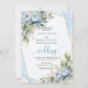 Glamourous Dusty Blue Gold Floral Wedding Invite