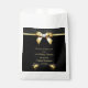 Beautiful elegant any age birthday party thank you favour bag for women, with printed images of a glamourous gold bow with a rhinestone diamond gem in the centre and a gold ribbon on a sparkly black glitter, and plain black background, with a bunch of gold and black balloons surrounded by stars in the bottom corners. All text is fully customisable to meet your requirements. Text colour can be changed. If you would like help to customise your product or would like matching products please contact me through my store and i will be very happy to help you.
