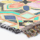 A fun, textured, geometric, faux gilded enamel design in shades of gold, yellow, jade, emerald, mint green, black, white, turquoise blue and coral.