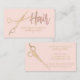 This glamourous, luxury, and chic hair business card is perfect for the professional hair stylish. It features a modern and artsy hand-drawn illustration of faux printed sparkly gold and pink glitter custom typography, "Hair," and gold foil of scissors on top of a simple blush pink background. It's trendy, girly, unique, and cool; the perfect design to attract customers.