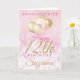 A gorgeous glamourous 12th birthday card for your granddaughter. This fabulous design features blush pink and gold glitter balloons on a rose pink sparkly background. Personalise with a name to wish someone a very happy twelfth birthday.
