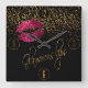 Glamourous Hot Pink Lips and Gold Confetti Square Wall Clock