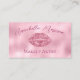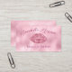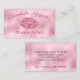 This glamourous and girly business card features a shiny looking, pink foil design. An image of bright pink glitter lips is placed in the centre. A sample name is printed above the lips in an elegant script font. A sample makeup artist title is printed below, with the business contact information printed on the back.