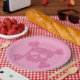 These party plates feature a glamourous gothic theme. An image of a skull and crossbones is printed in the centre in a pink glitter design over a pink background.