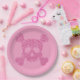 Glamourous Pink Glitter Skull and Crossbones Paper Plate
