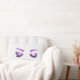 A pillow with a beautiful watercolor painted illustration. Pretty purple eyes and brows, eyes closed showing off long elegant eye lashes.