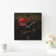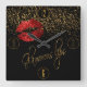 Glamourous Red Lips and Gold Confetti Square Wall Clock