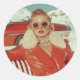 Glamourous Retro Winter Style in Alpine Setting Classic Round Sticker