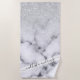 Glamourous Silver White Glitter Marble Gradient Beach Towel