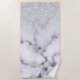Glamourous Silver White Glitter Marble Gradient Beach Towel