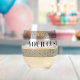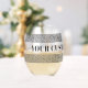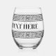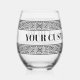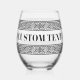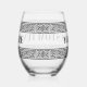 Glamourous stemless wine glass with Greek key meander print. Elegant drinking glasses personalised with text. Trendy glasses for Birthday party, home, wedding and more.