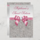 Glamourous Sweet 16 Faux Silver Sequins Pink Bow Invitation