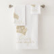 Modern stylish bath towels white with dusty gold on monogram-name (the gold is a digital effect, not real foil).