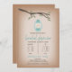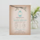 A wedding bridal shower glamping invitation featuring an illustration of blue camping lantern hanging from a tree branch with green leaves. Background is cardstock inspired. Personalise the text with details of your occasion.