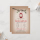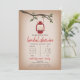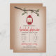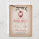 A wedding bridal shower glamping invitation featuring an illustration of a lantern filled with a red camping lantern hanging from a tree branch with green leaves. Background is cardstock inspired. Personalise the text with details of your occasion.