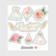 Glamping under the stars themed birthday party stickers. The sticker sheet features our hand drawn glamours white satin polka dot tepee watercolor artwork. Birthday presents are nested in the opening of the tepee. Our beautiful watercolour florals, faux gold feathers, cupcake, and  balloon are included in our bohemian glamping birthday sticker set. All illustrations contained in our glamping birthday stickers are hand-drawn original artwork by Moodthology.