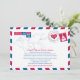 A fun creative airmail Wedding Invitation and Reception to send to all your guest for your destination wedding. This location is for Glasgow, Scotland UK however if you have a different location please email paula@labellarue.com BEFORE YOU CUSTOMIZE OR PLACE AN ORDER so a new design template can be created for you.