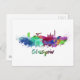 Glasgow skyline in watercolor postcard