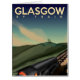 Glasgow vintage train poster. Scotland travel art with a locomotive train.