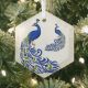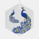 This Christmas Ornament is shown in the glass hexagon shape with a white background colour with a lovely peacocks print.