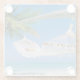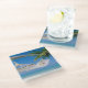 Glass coaster is shown with a photo print of a pretty tropical beach scene.