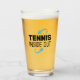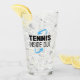 Serve up your favorite drinks in style with this sleek glass cup featuring the “Tennis Inside Out” design.