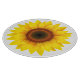 Glass cutting board is shown in a round style in a lovely sunflower print.