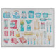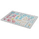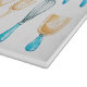 Glass kitchen chopping board with image of kitchen utensils in watercolours.