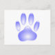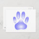 A shiny, transparent dog paw print made of glass. Custom postcards. All digital image that reproduces the texture of glass.