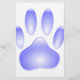 A shiny, transparent dog paw print made of glass. All digital image that reproduces the texture of glass.