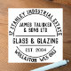 Glass makers stamp. Glass & Glazing Rubber Stamp. Company Name, Business type, plus Two Lines of Address in a circular effect. A business rubber stamp for all kinds of stationery items, envelopes, packages etc. Stamp your return address easily and stylishly.