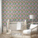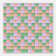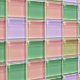 Give a bathroom wall the look of mosaic tiles with this flat print that creates a raised glass tile illusion. Pastel rose-pink and lilac sit beside shades of green in the individual squares divided by a subtle grout effect.