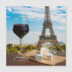 Glass of wine with brie cheese on Eiffel tower