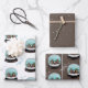 Festive Glass Snowball Winter Village Brown Blue Christmas Wrapping Paper Sheets. Fairy tale houses in winter with snow and beautiful snowflakes. Lovely white and blue climbing plants.