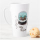 Festive Glass Snowball Winter Village Plant Merry Christmas Holiday Latte Mug. Fairy tale houses in winter with snow and beautiful snowflakes. Lovely brown climbing plants. A Merry Christmas wish in a trendy script. You can change any text on the latte mug.
