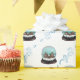 Glass Snowball Winter Village Snowy House Christmas Wrapping Paper. Fairy tale houses in winter with snow and beautiful snowflakes. Lovely blue climbing plants - foliage ornaments on a white background.