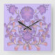 Glass tile 3D liquid violet flowers gzhel Square Wall Clock